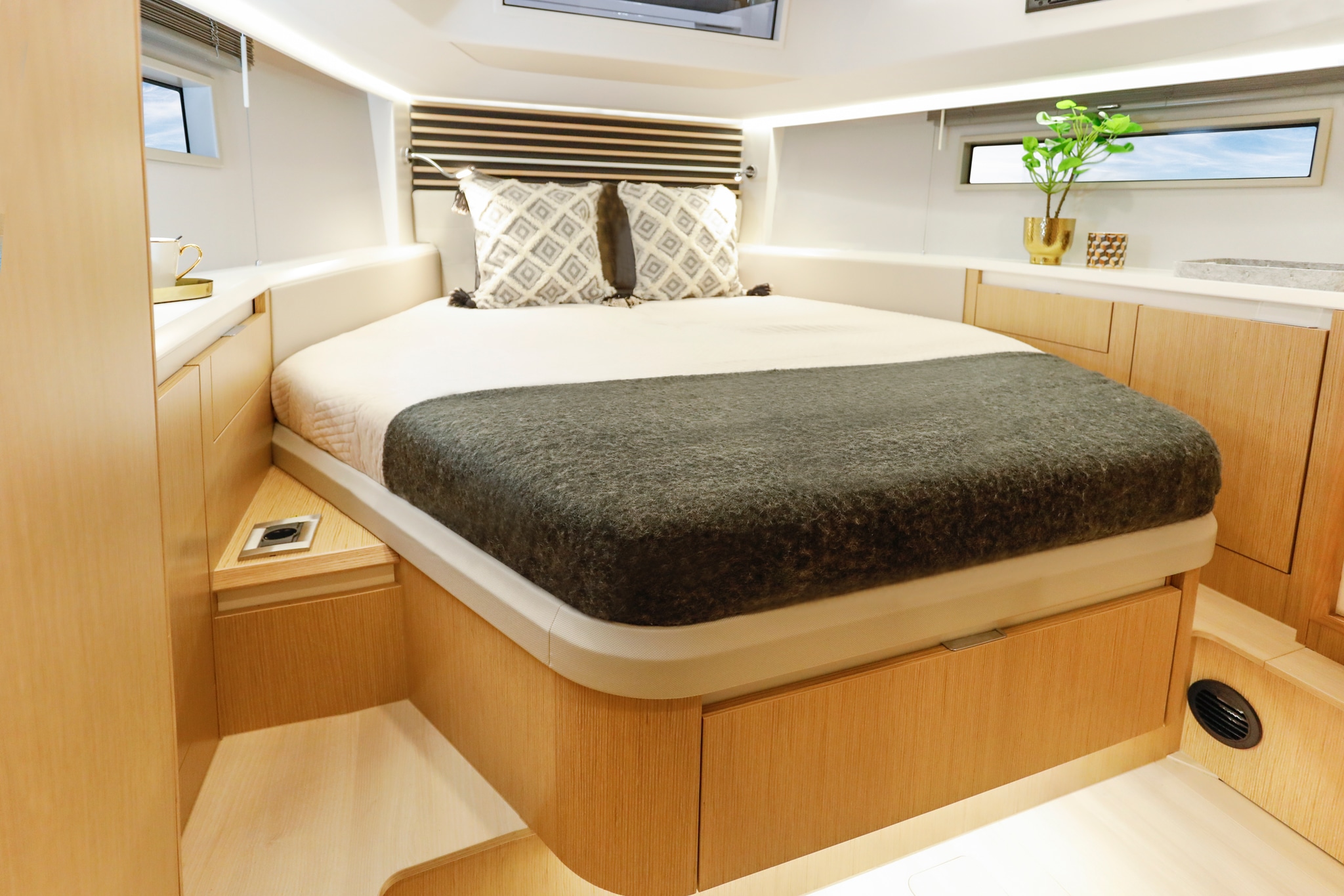 At the heart of each Moody yacht lies a commitment to unparalleled space utilisation. From innovative patio push and sliding doors to folding teak tables, every feature is tailored to enhance utility elegantly. Coupled with generous storage — say, full-size tender garages and spacious lockers — each yacht transforms into a floating apartment, ensuring both comfort and practicality on extended voyages.